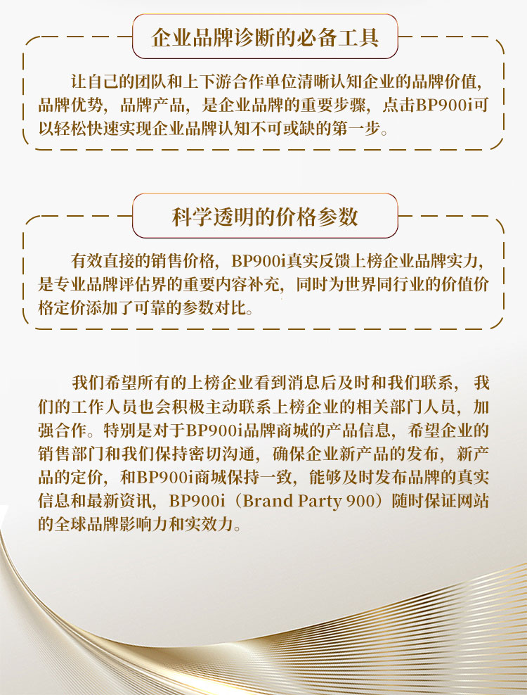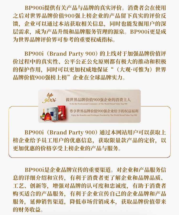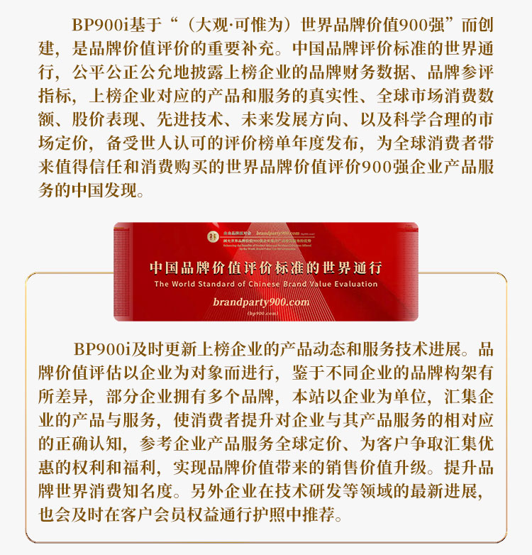 BP900i(Brand Party 900)中国品牌价值权威评价标准的世界通行,(大观·可惟为)世界品牌价值900强企业产品和服务集合