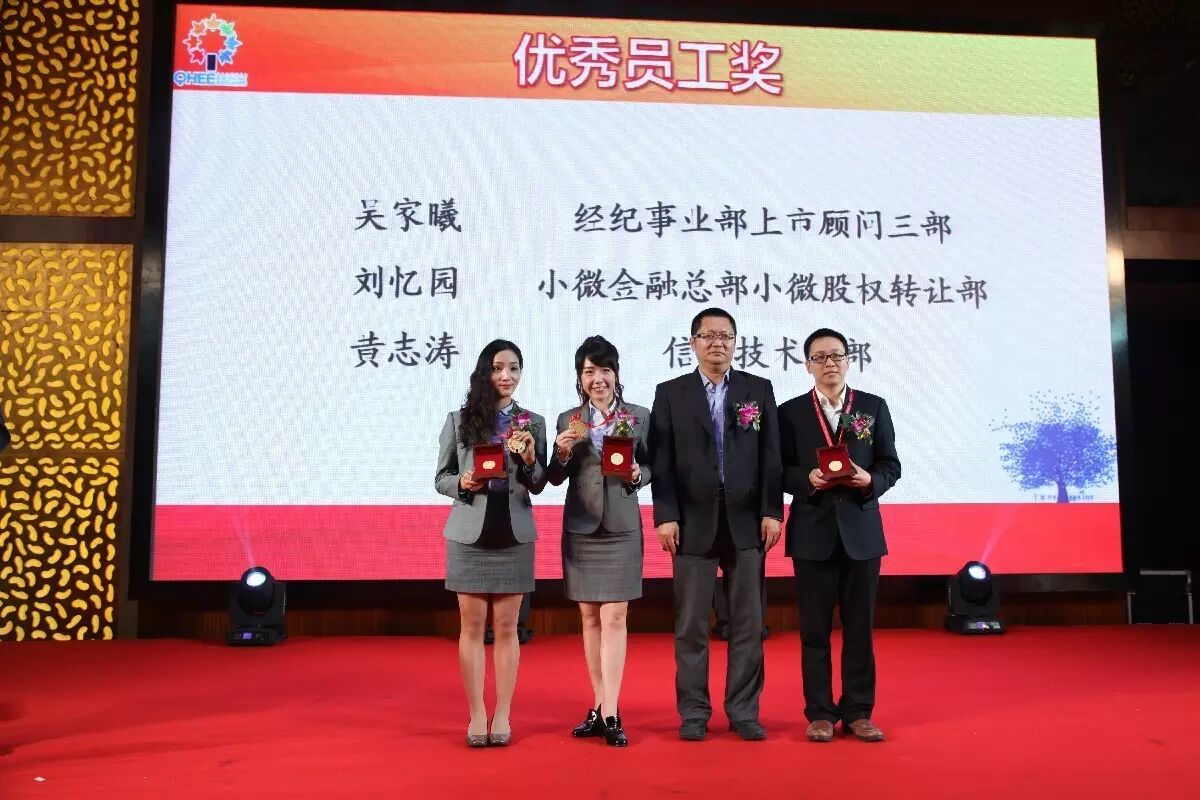 2016年4月8日,前海股权交易中心第四届“梧桐之星”优秀员工总结表彰大会在东莞松山湖凯悦酒店隆重举行。胡继之董事长、陈俊生常务副总裁等中心领导、各子公司负责人、厦门两岸股权交易中心负责人、江西联合股权交易中心负责人、中心全体员工、子公司员工、厦门两岸股权交易中心及江西联合股权交易中心员工均参与了此次表彰大会。