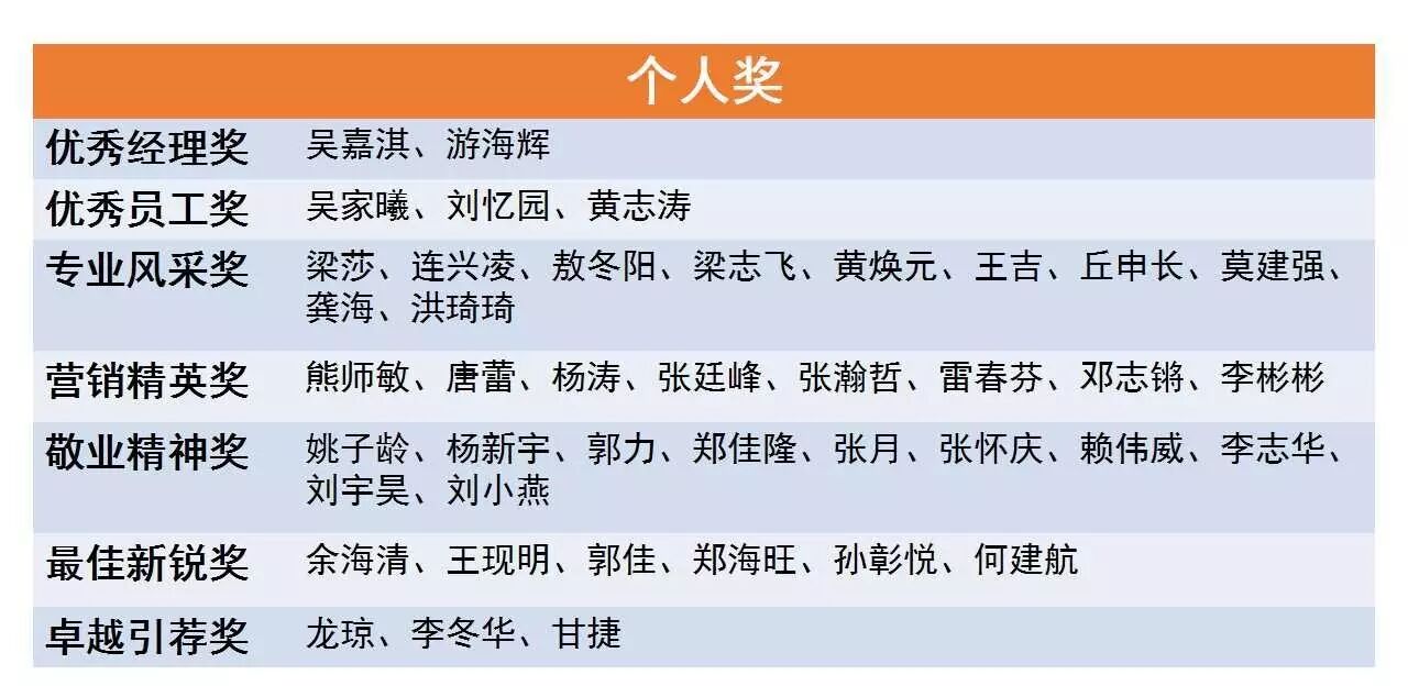 获奖名单一览